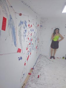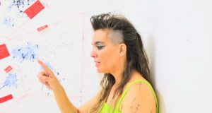 Quiere recuperar la letra T, y la memoria para reconocer los detalles del accidente que vivió, según dice, hace 41 años. Sobre todo quiere recordar la cara de su mamá. Ella habla de allanar las caóticas salpicaduras de la sangre, de uniformar la agresividad de las manchas en su muro, en un rojo plano y pacífico, de alcanzar un estado neutro y liso de la violencia.